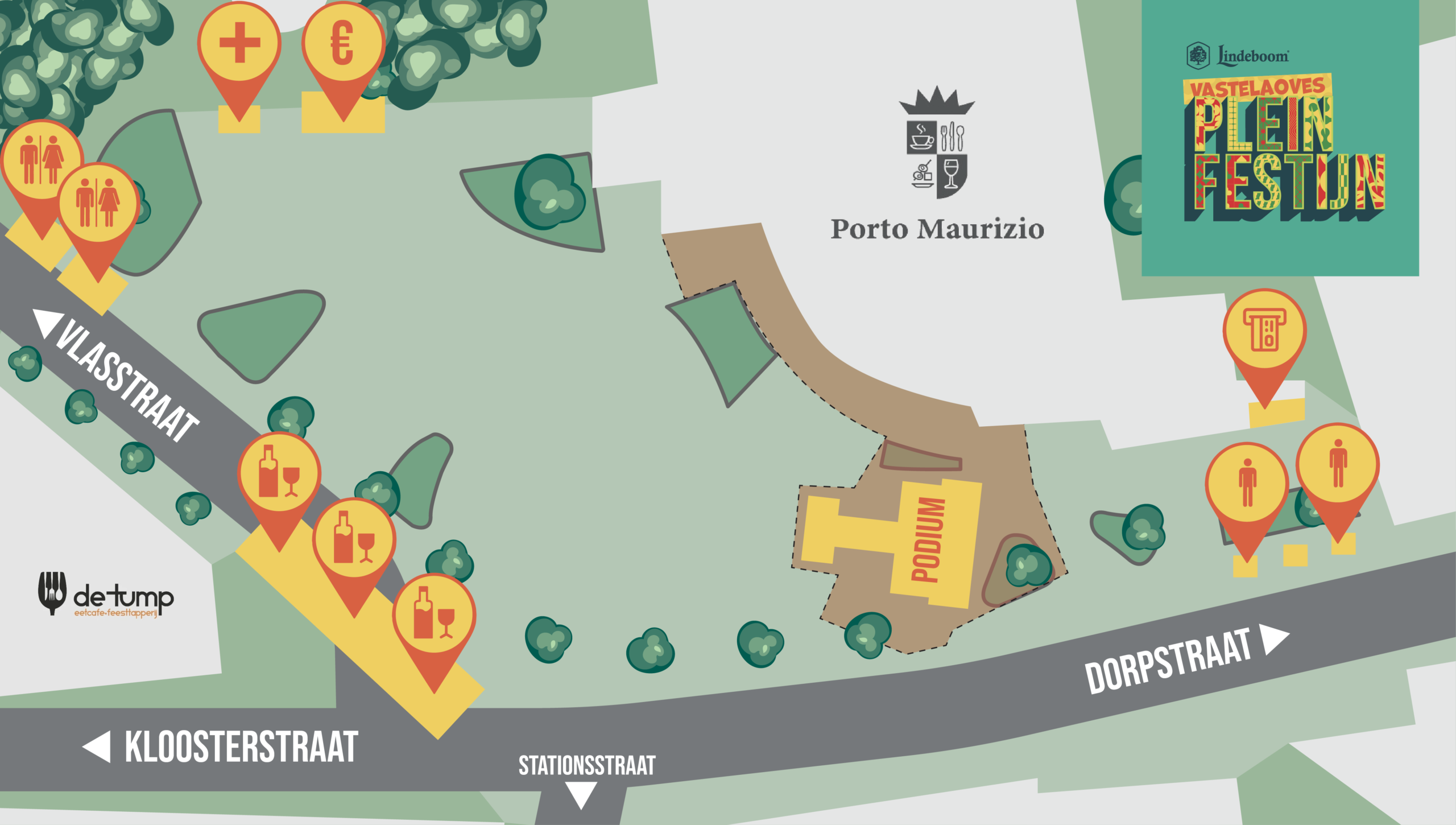 Woeë vins se de bar, ’t podium, de wc’s, of de EHBO-post? Op de plattegeróndj steit alles äöverzichtelik aangegaeve. Zoeë hoofs se niks te misse en wèts se altied woeës se mós zeen.